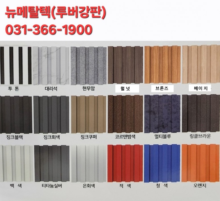 샌드위치패널, 조립식판넬, 메탈판넬, 라인메탈패널,징크판넬,벽체판,지붕판넬/ 성형강판:루버,징크,지붕 합성목재 루바월느낌의 루버강판(템바보드느낌),템바징크:다양한색상,다양한사이즈 가능 > 판넬색상표 | <뉴메탈텍/메탈판넬/징크패널/라인판넬/루버강판,쉼터