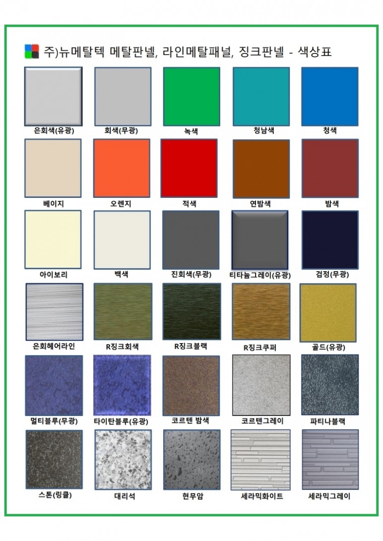 N라인메탈판넬 시공된 색상: 금색, 은회색, 현무암